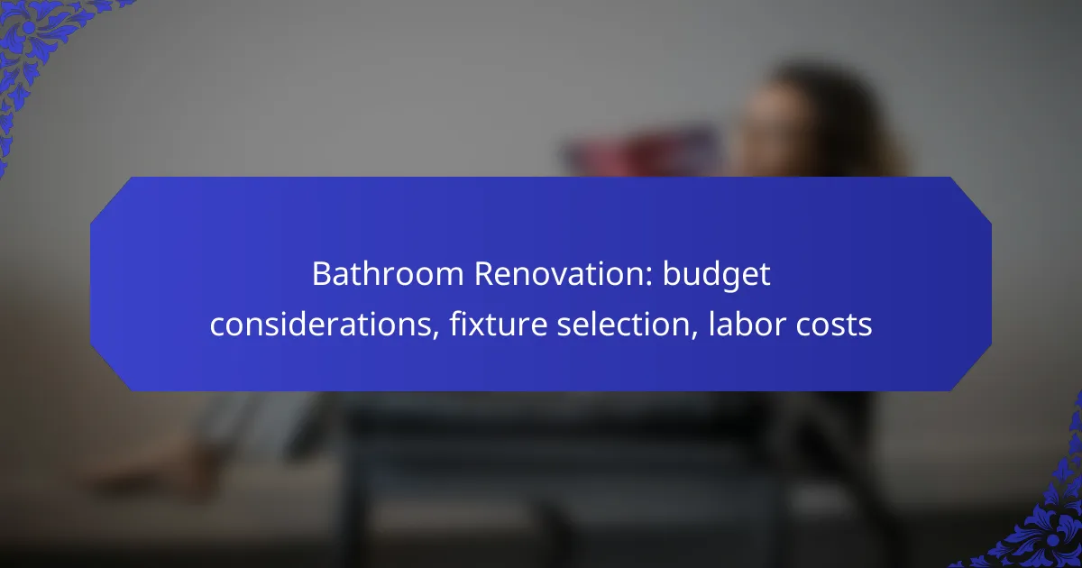 Embarking on a bathroom renovation requires careful planning, particularly regarding budget considerations, fixture selection, and labor costs. By understanding the overall expenses and key components involved, homeowners can avoid unexpected financial burdens. Choosing the right fixtures is essential for achieving a balance between style, functionality, and cost, while being aware of labor costs ensures quality workmanship within your budget.